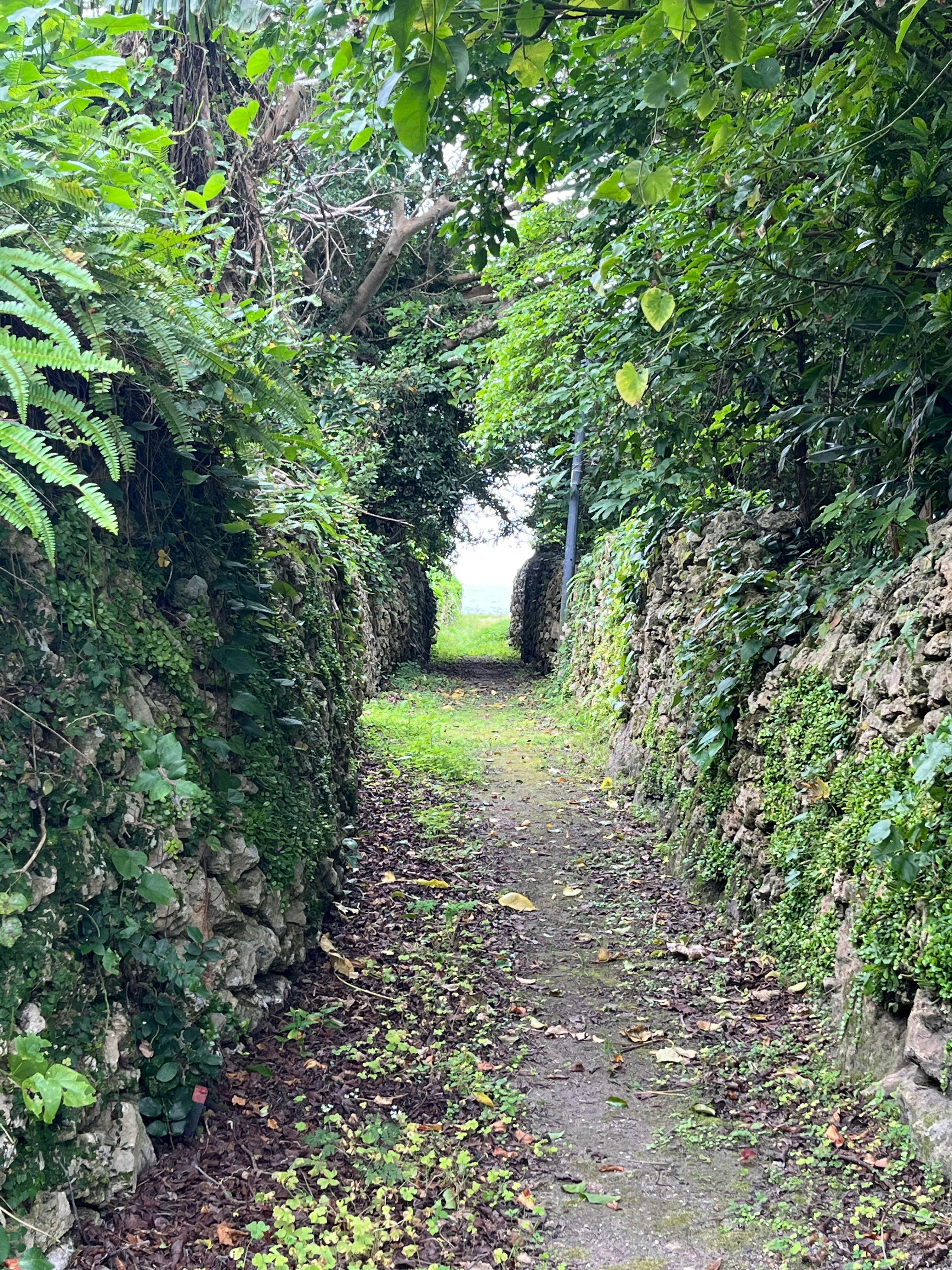 4. 阿伝集落のサンゴ礁石垣・・台風対策としと家の垣根をサンゴの石垣で作り風や潮を防ぐ。規模が凄い。石垣の隙間にハブがいないので安心して観光できる。→なぜいないのか?島の成立ち。
